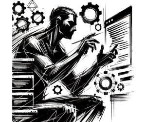 Samotna postać krocząca w cieniu, obserwator, który dopiero wkracza na ścieżkę samorozwoju.